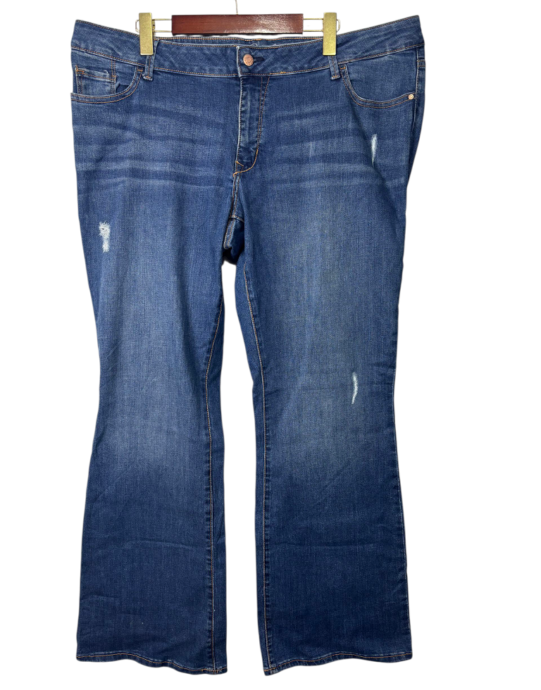 Mid-Rise Distressed Flare/Bootcut Jeans - Dark Wash Denim - Size 44 Waist