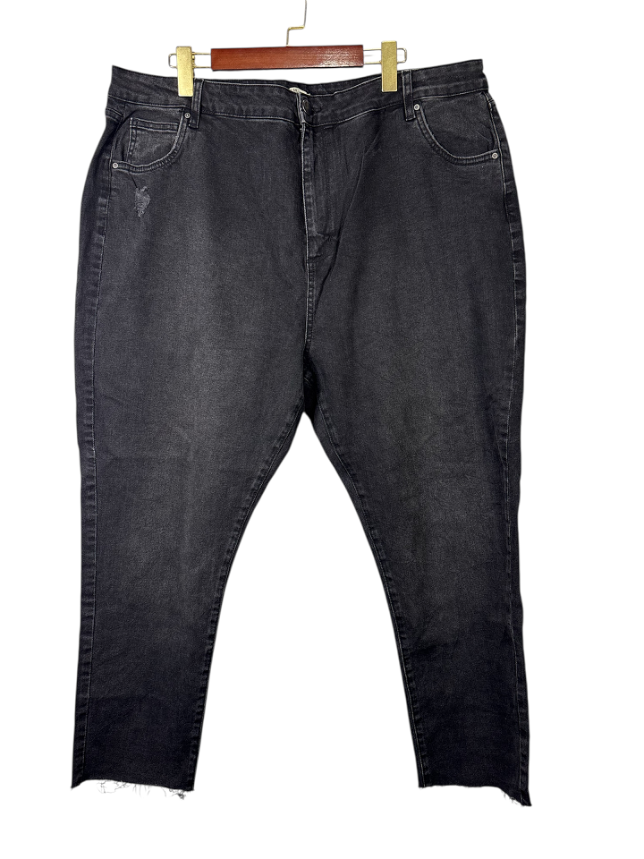 Women's Distressed Black Denim Ankle Jeans with Raw Hem (Size 40 Waist)